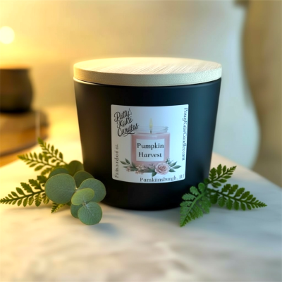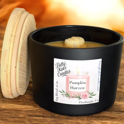 Our soy-blend candle comes in a 16-ounce frosted glass or black container, providing many hours of burn time. Your choice of cotton or crackling wood wick along with your favorite fragrance.