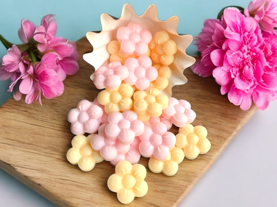 2 ounces – These adorable flower-shaped wax melts are perfect for bringing a touch of spring into your home. Select your preferred scent, and for an extra special touch, you can place them on top of our 16-ounce candle to create a personalized aroma experience. The delightful fragrance will effortlessly permeate your space, making it feel fresh and inviting.